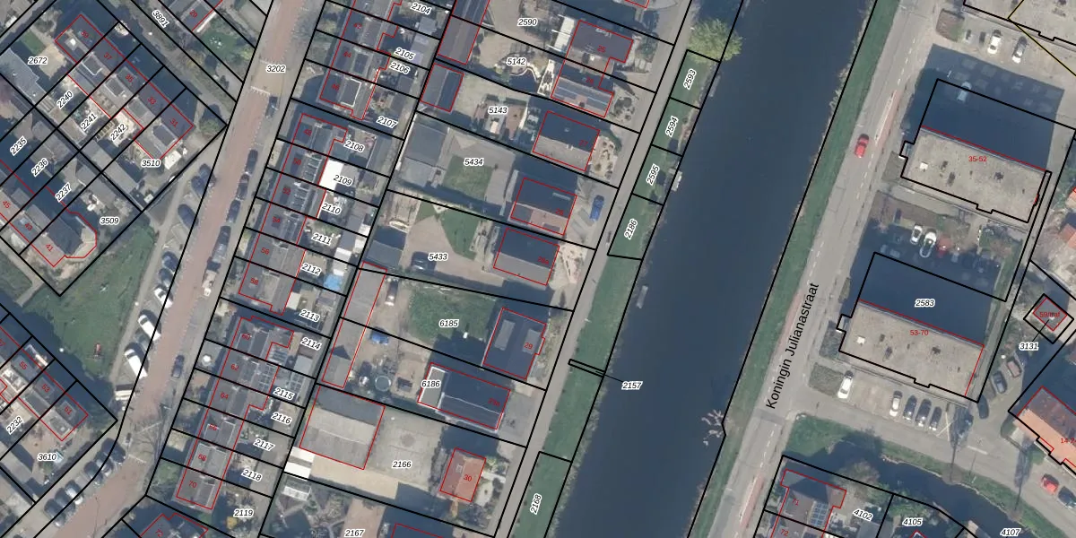 Gebruik de zoekbalk of klik op een perceel voor informatie over de adressen binnen dit perceel.