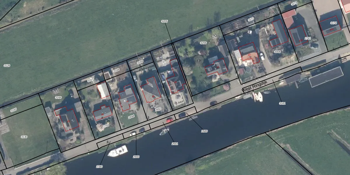 Het perceel waarop West Ringdijk 45 staat heeft een oppervlakte van 463 m². Dit is een groot perceel. De perceeloppervlakte wordt geregistreerd door het Kadaster. Gedetailleerde informatie over de maten van dit perceel kunt u vinden in het rapport Kadastrale kaart met maatvoering van West Ringdijk 45.