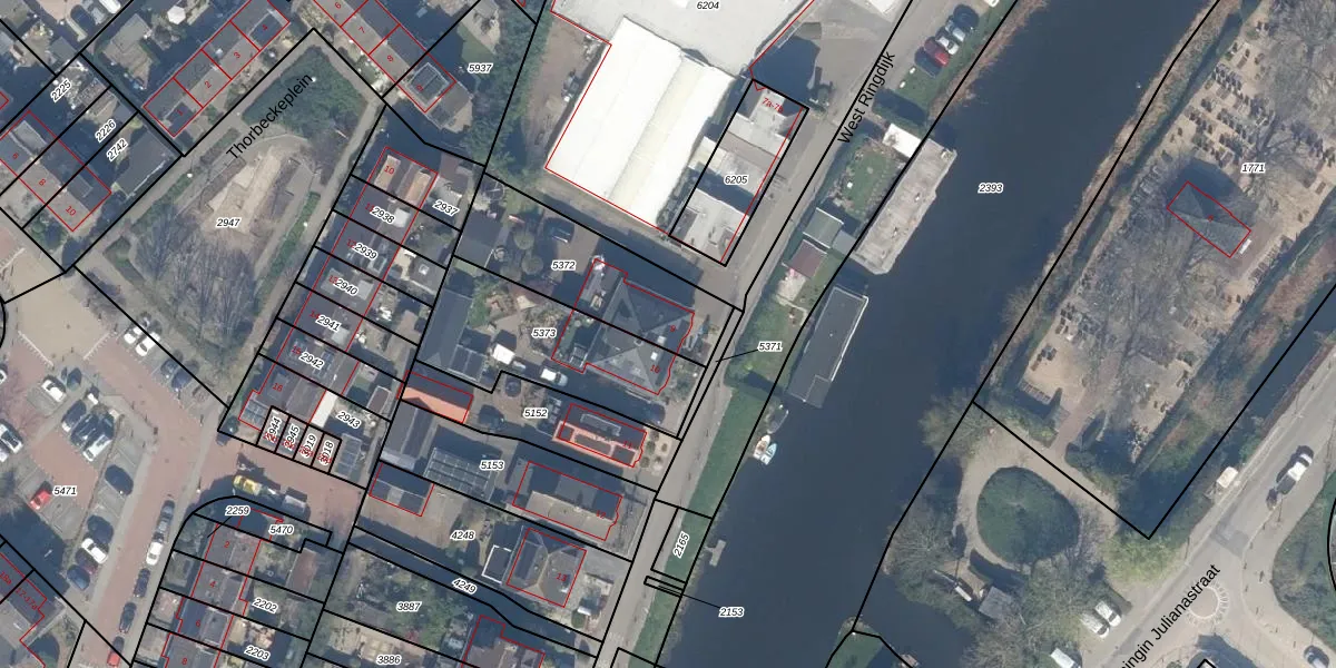 Het perceel waarop West Ringdijk 9 staat heeft een oppervlakte van 481 m². Dit is een groot perceel. De perceeloppervlakte wordt geregistreerd door het Kadaster. Gedetailleerde informatie over de maten van dit perceel kunt u vinden in het rapport Kadastrale kaart met maatvoering van West Ringdijk 9.