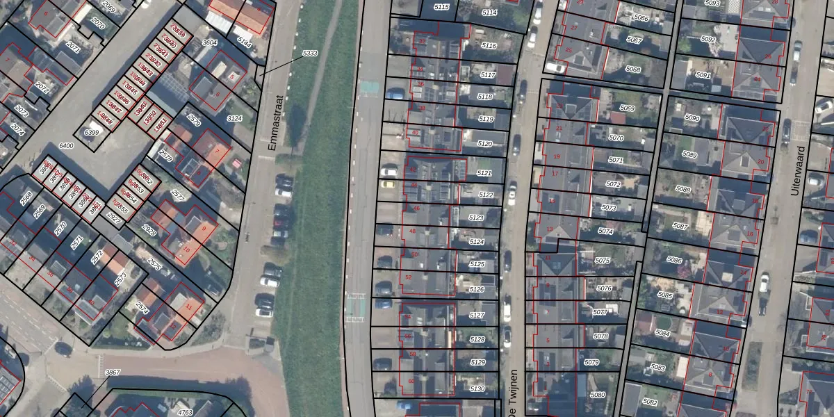 Het adres is gelegen op perceel 5123 in de sectie C en de kadastrale gemeente Moordrecht. De kadastrale aanduiding is aldus MDT02-C-5123. Het perceel is kleiner dan gemiddeld in Moordrecht. Het perceel is 163 m² groot, terwijl het gemiddelde ligt op 2549,99 m². Het kleinste perceel in de kadastrale gemeente is 0 m² groot. De grootste perceeloppervlakte is 21,7 ha. Er zijn geen andere adressen aanwezig op het perceel. De laatste wijziging in het de Basisregistratie Kadaster (BRK) was op 02-05-2003.