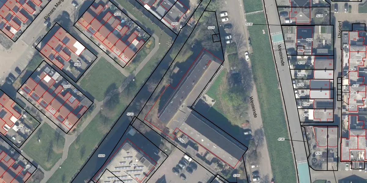 Het adres is gelegen op perceel 5769 in de sectie C en de kadastrale gemeente Moordrecht. De kadastrale aanduiding is aldus MDT02-C-5769. Het perceel is kleiner dan gemiddeld in Moordrecht. Het perceel is 2399 m² groot, terwijl het gemiddelde ligt op 2546,42 m². Het grootste perceel in de kadastrale gemeente is 21,7 ha. Het kleinste perceel heeft een oppervlakte van 0 m². Op het perceel zijn 51 adressen aanwezig. De huidige grenzen van het perceel zijn digitaal in de Basisregistratie Kadaster (BRK) geregistreerd op 05-07-2012.