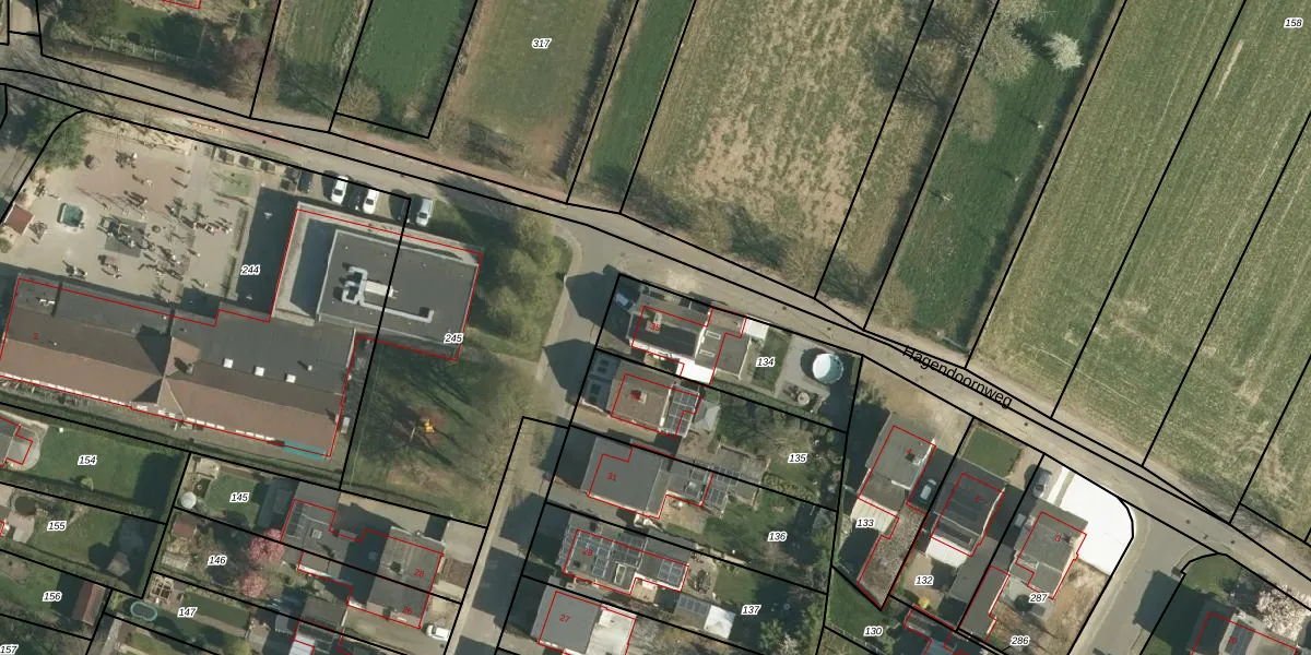 Het adres is gelegen op perceel 134 in de sectie E en de kadastrale gemeente Ulestraten. De kadastrale aanduiding is aldus ULS00-E-134. Het perceel is 489 m² groot. Dat is kleiner dan de gemiddelde perceeloppervlakte in Ulestraten, dat op 1425,46 m² ligt. Het grootste perceel in de kadastrale gemeente is 5,9 ha. Het kleinste perceel heeft een oppervlakte van 1 m². Op het perceel bevinden zich geen andere adressen. De huidige grenzen van het perceel zijn digitaal in de Basisregistratie Kadaster (BRK) geregistreerd op 10-08-2007.