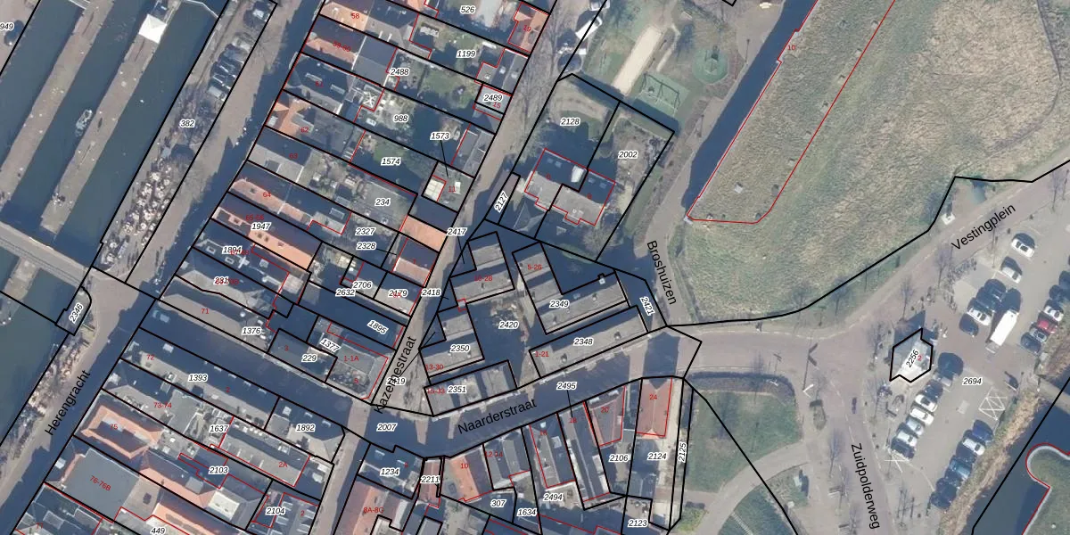 Het perceel waarop het adres ligt is MDN01-B-2349. De afkorting 'MDN01' staat voor kadastrale gemeente Muiden. Het perceel is 155 m² groot. Dat is kleiner dan de gemiddelde perceeloppervlakte in Muiden, dat op 5038,85 m² ligt. De grootste perceeloppervlakte in de kadastrale gemeente is 16,18 km². De kleinste oppervlakte bedraagt 0 m². Er zijn 10 adressen aanwezig op het perceel. De huidige grenzen van het perceel zijn digitaal in de Basisregistratie Kadaster (BRK) geregistreerd op 17-09-2010.
