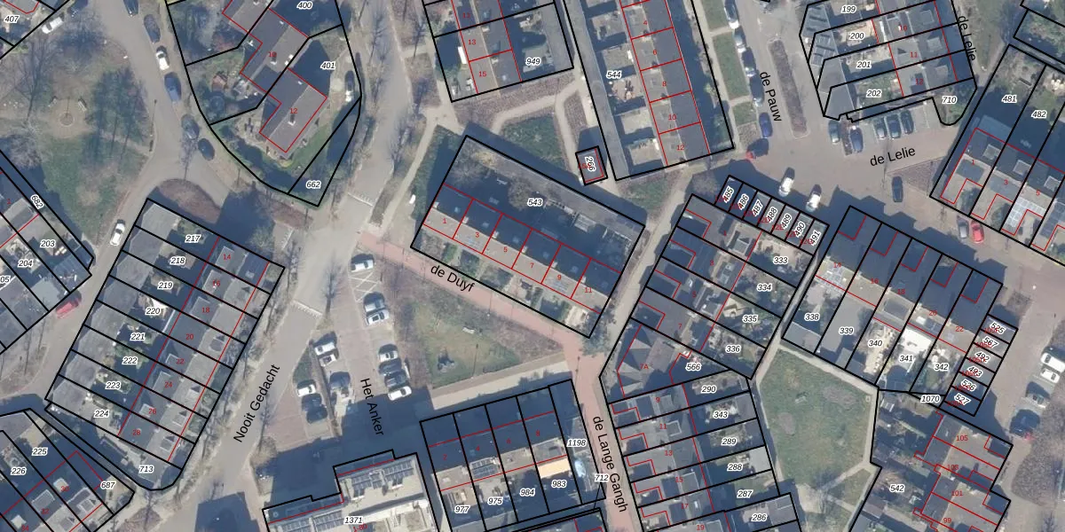 Het perceel waarop de Duyf 7 staat heeft een oppervlakte van 879 m². Dit is een groot perceel. De perceeloppervlakte wordt geregistreerd door het Kadaster. Gedetailleerde informatie over de maten van dit perceel kunt u vinden in het rapport Kadastrale kaart met maatvoering van de Duyf 7.