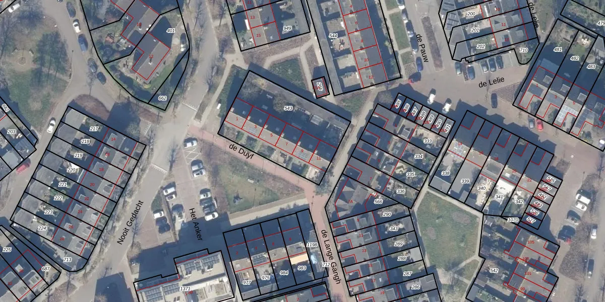 Het perceel waarop de Duyf 9 staat heeft een oppervlakte van 879 m². Dit is een groot perceel. De perceeloppervlakte wordt geregistreerd door het Kadaster. Gedetailleerde informatie over de maten van dit perceel kunt u vinden in het rapport Kadastrale kaart met maatvoering van de Duyf 9.