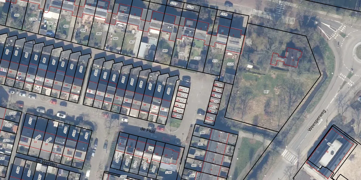 Het perceel waarop de Fluit 13-H staat heeft een oppervlakte van 20 m². Dit is een klein perceel. De perceeloppervlakte wordt geregistreerd door het Kadaster. Gedetailleerde informatie over de maten van dit perceel kunt u vinden in het rapport Kadastrale kaart met maatvoering van de Fluit 13-H.
