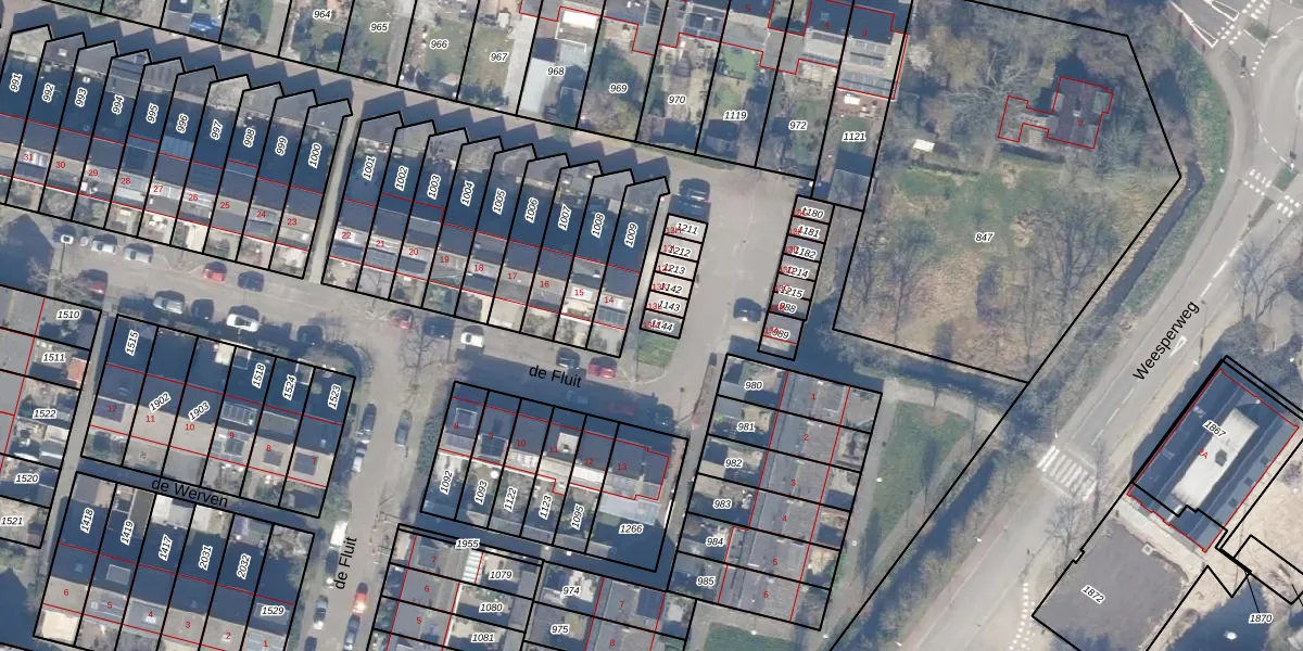 Het perceel waarop de Fluit 13-M staat heeft een oppervlakte van 20 m². Dit is een klein perceel. De perceeloppervlakte wordt geregistreerd door het Kadaster. Gedetailleerde informatie over de maten van dit perceel kunt u vinden in het rapport Kadastrale kaart met maatvoering van de Fluit 13-M.
