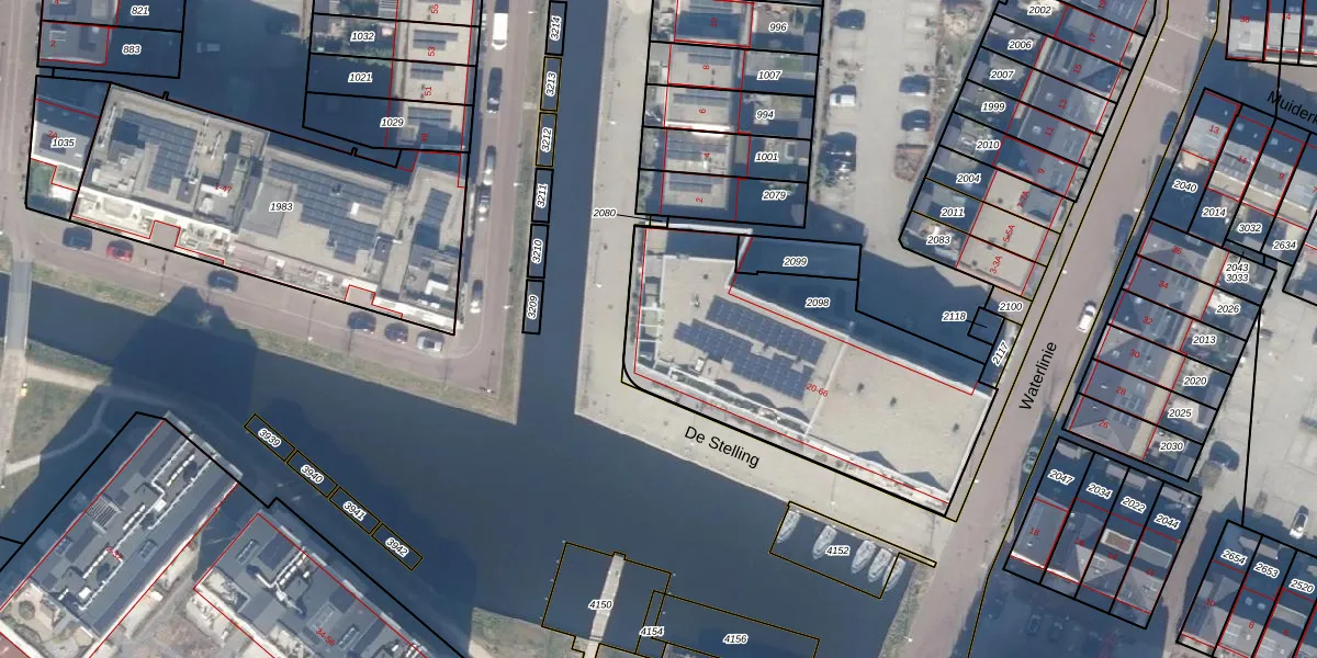 Het adres is gelegen op perceel 2098 in de sectie A en de kadastrale gemeente Muiden. De kadastrale aanduiding is aldus MDN01-A-2098. De gemiddelde perceelgrootte in Muiden is 5038,85 m². Dit perceel is kleiner: de perceeloppervlakte bedraagt 1385 m². Het grootste perceel in de kadastrale gemeente is 16,18 km². Het kleinste perceel heeft een oppervlakte van 0 m². Op het perceel liggen in totaal 24 adressen. In de Basisregistratie Kadaster (BRK) werden de grenzen van het perceel geregistreerd op 22-12-2021.