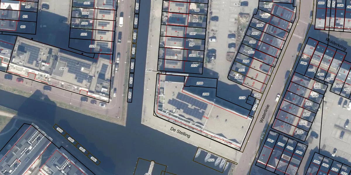 Het adres is gelegen op perceel 2098 in de sectie A en de kadastrale gemeente Muiden. De kadastrale aanduiding is aldus MDN01-A-2098. De gemiddelde perceelgrootte in Muiden is 5038,85 m². Dit perceel is kleiner: de perceeloppervlakte bedraagt 1385 m². Het grootste perceel in de kadastrale gemeente is 16,18 km². Het kleinste perceel heeft een oppervlakte van 0 m². Er zijn 24 adressen aanwezig op het perceel. In de Basisregistratie Kadaster (BRK) werden de grenzen van het perceel geregistreerd op 22-12-2021.