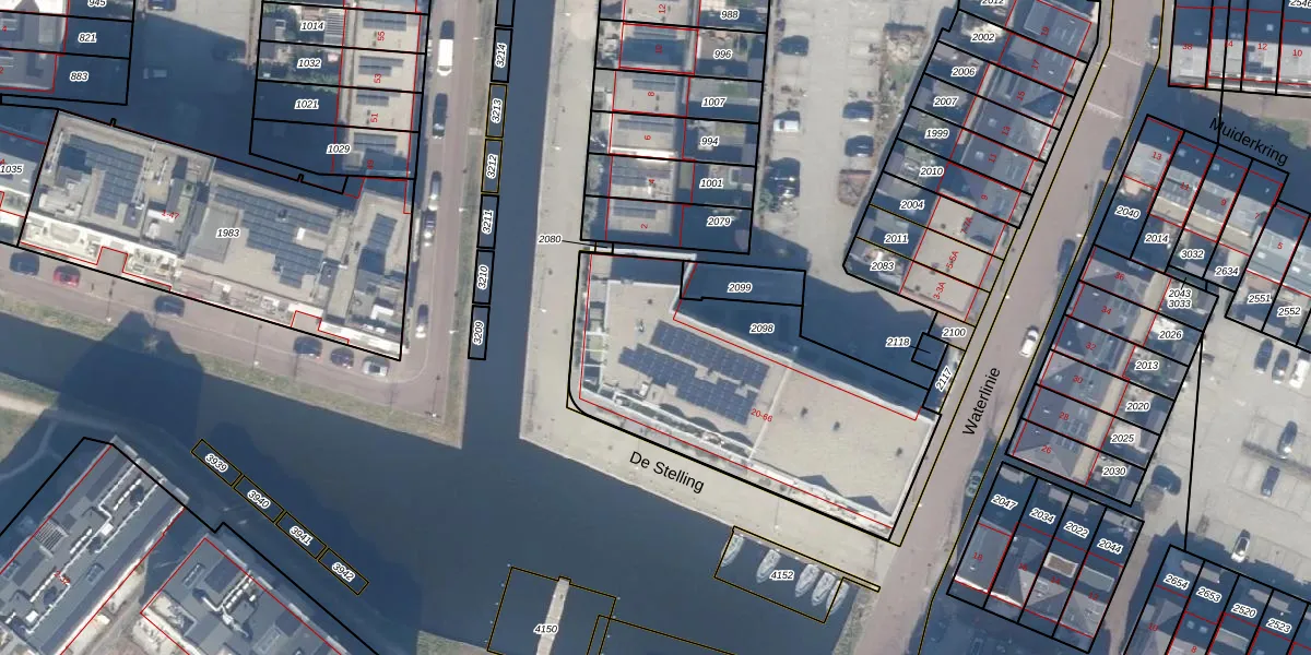 Het adres is gelegen op perceel 2098 in de sectie A en de kadastrale gemeente Muiden. De kadastrale aanduiding is aldus MDN01-A-2098. De gemiddelde perceelgrootte in Muiden is 5040,34 m². Dit perceel is kleiner: de perceeloppervlakte bedraagt 1385 m². Het kleinste perceel in de kadastrale gemeente is 0 m² groot. De grootste perceeloppervlakte is 16,18 km². Op het perceel zijn 24 adressen aanwezig. De laatste wijziging in het de Basisregistratie Kadaster (BRK) was op 22-12-2021.