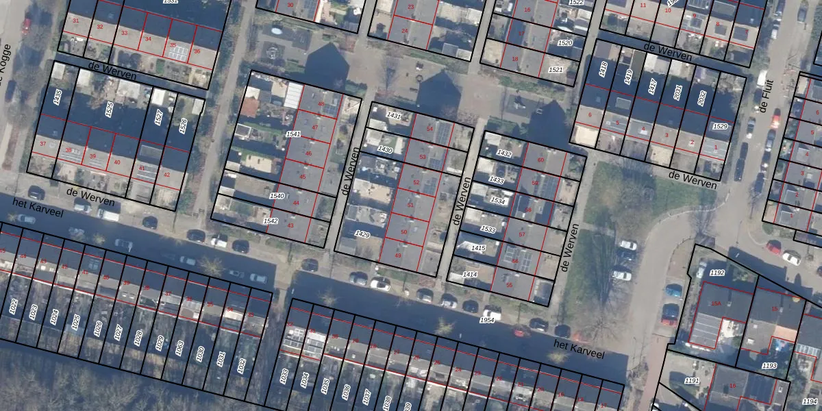Het perceel waarop de Werven 51 staat heeft een oppervlakte van 645 m². Dit is een groot perceel. De perceeloppervlakte wordt geregistreerd door het Kadaster. Gedetailleerde informatie over de maten van dit perceel kunt u vinden in het rapport Kadastrale kaart met maatvoering van de Werven 51.