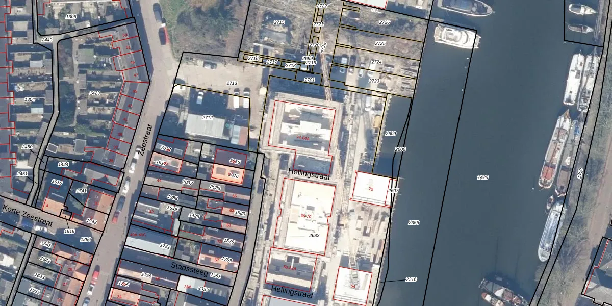 Hellingstraat 82-A is gelegen op kadastraal perceel MDN01B2682. Deze kadastrale aanduiding is uniek en wordt gebruikt door het Kadaster om eigendomsrechten en andere zakelijke rechten vast te leggen. Het perceel maakt onderdeel uit van de kadastrale gemeente Muiden.