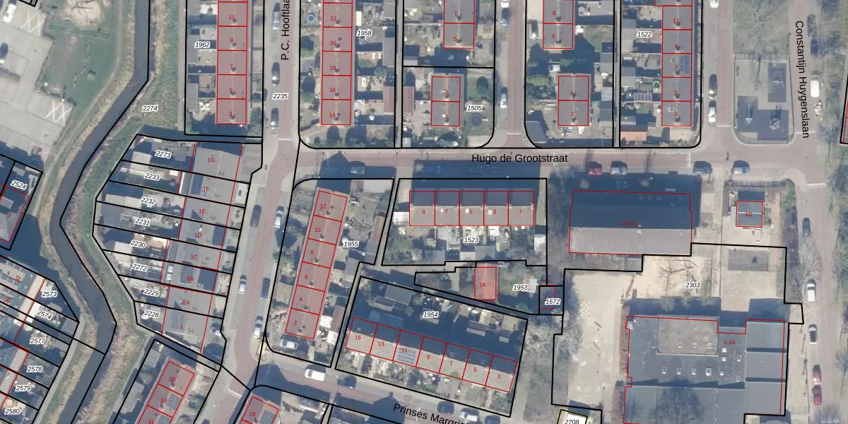 Hugo de Grootstraat 9 is gelegen op kadastraal perceel MDN01B1523. Deze kadastrale aanduiding is uniek en wordt gebruikt door het Kadaster om eigendomsrechten en andere zakelijke rechten vast te leggen. Het perceel maakt onderdeel uit van de kadastrale gemeente Muiden.