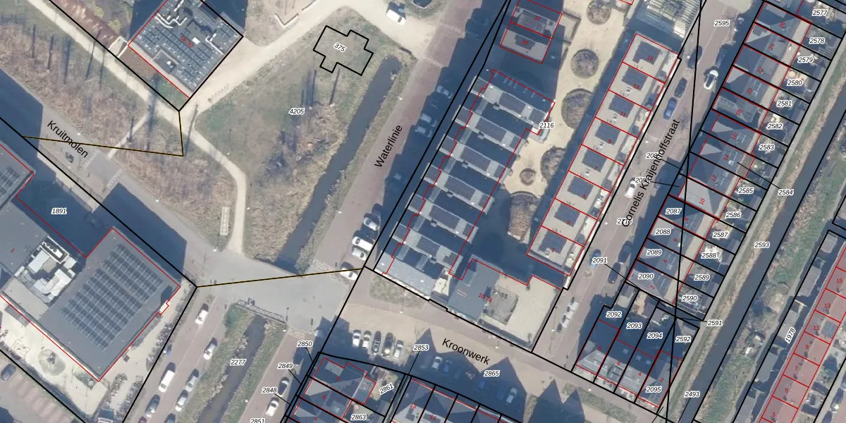 Het perceel waarop Kroonwerk 32 staat heeft een oppervlakte van 4150 m². Dit is een zeer groot perceel. De perceeloppervlakte wordt geregistreerd door het Kadaster. Gedetailleerde informatie over de maten van dit perceel kunt u vinden in het rapport Kadastrale kaart met maatvoering van Kroonwerk 32.