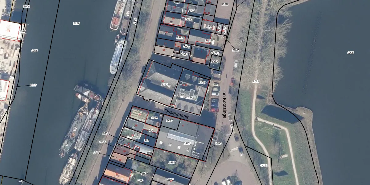 Het perceel waarop Ossenmarkt 10 staat heeft een oppervlakte van 347 m². Dit is een groot perceel. De perceeloppervlakte wordt geregistreerd door het Kadaster. Gedetailleerde informatie over de maten van dit perceel kunt u vinden in het rapport Kadastrale kaart met maatvoering van Ossenmarkt 10.