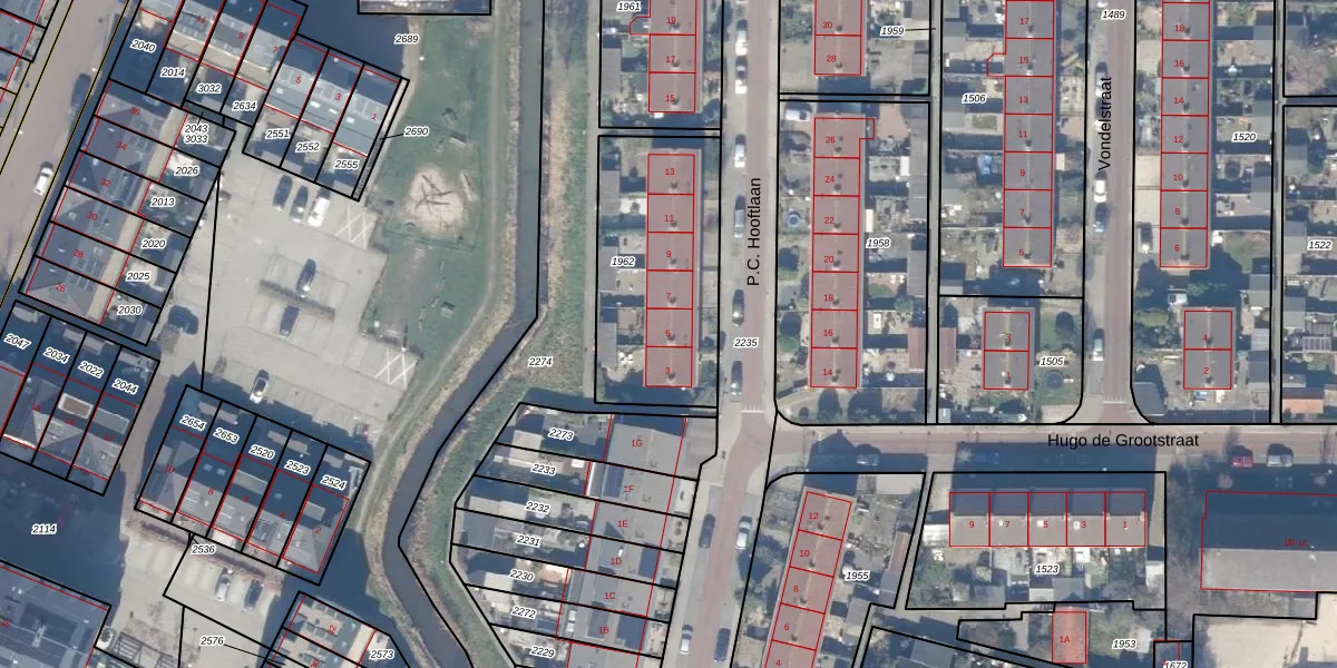 Het perceel waarop P.C. Hooftlaan 5 staat heeft een oppervlakte van 727 m². Dit is een groot perceel. De perceeloppervlakte wordt geregistreerd door het Kadaster. Gedetailleerde informatie over de maten van dit perceel kunt u vinden in het rapport Kadastrale kaart met maatvoering van P.C. Hooftlaan 5.
