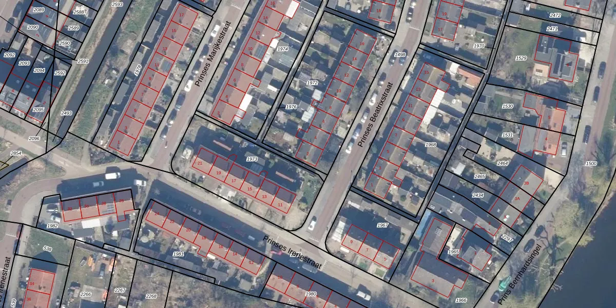 Het perceel waarop Prinses Beatrixstraat 2 staat heeft een oppervlakte van 1165 m². Dit is een zeer groot perceel. De perceeloppervlakte wordt geregistreerd door het Kadaster. Gedetailleerde informatie over de maten van dit perceel kunt u vinden in het rapport Kadastrale kaart met maatvoering van Prinses Beatrixstraat 2.