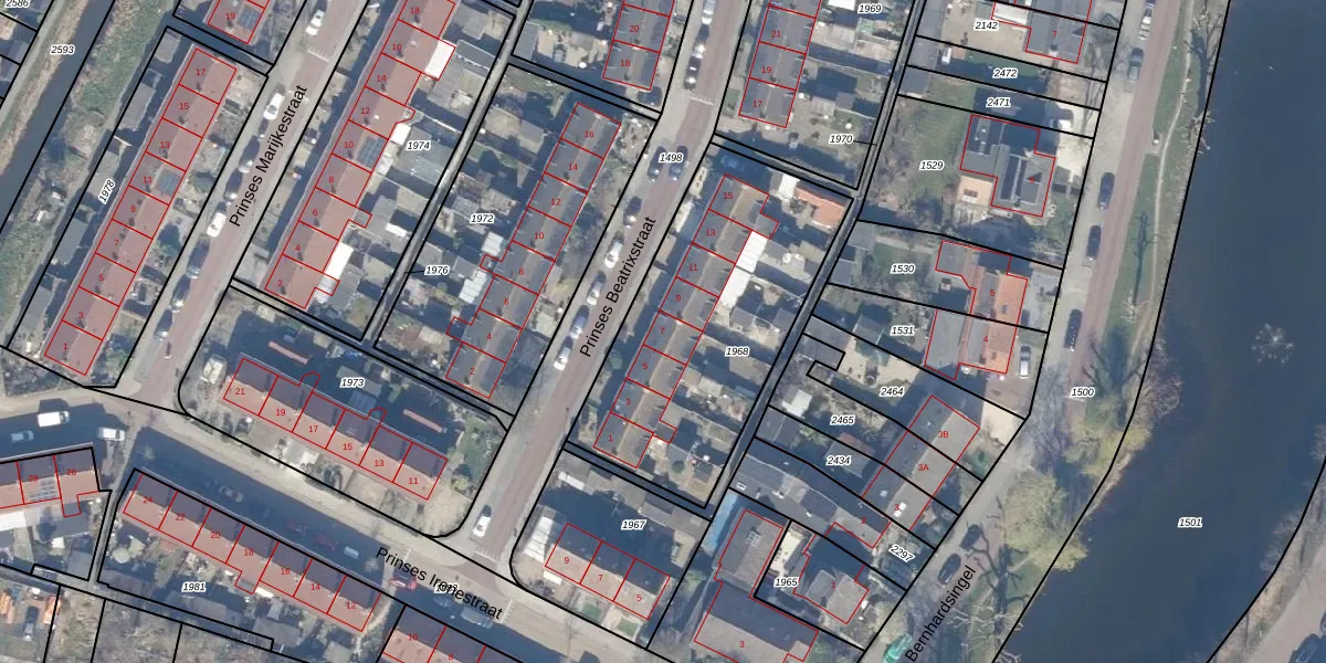 Het perceel waarop Prinses Beatrixstraat 7 staat heeft een oppervlakte van 1185 m². Dit is een zeer groot perceel. De perceeloppervlakte wordt geregistreerd door het Kadaster. Gedetailleerde informatie over de maten van dit perceel kunt u vinden in het rapport Kadastrale kaart met maatvoering van Prinses Beatrixstraat 7.