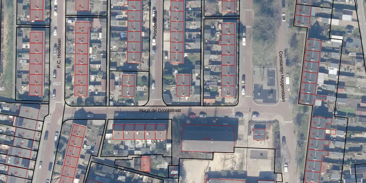 Het perceel waarop Vondelstraat 2 staat heeft een oppervlakte van 1600 m². Dit is een zeer groot perceel. De perceeloppervlakte wordt geregistreerd door het Kadaster. Gedetailleerde informatie over de maten van dit perceel kunt u vinden in het rapport Kadastrale kaart met maatvoering van Vondelstraat 2.