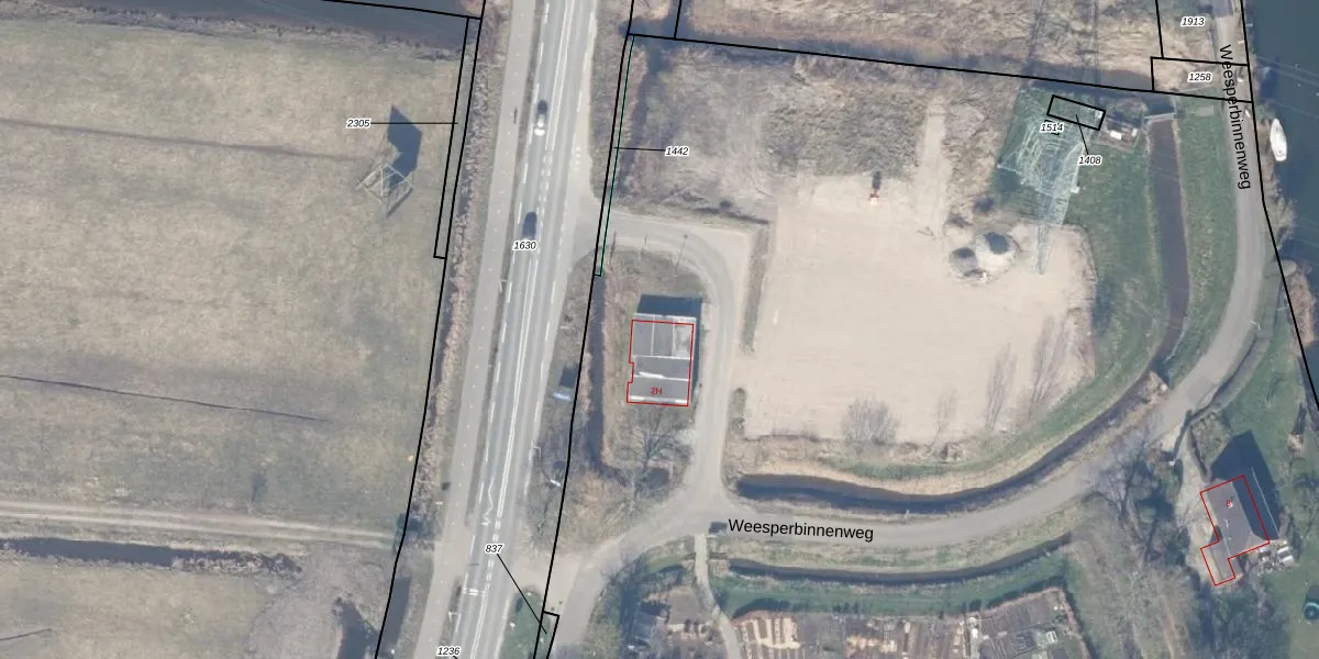 Het perceel waarop Weesperweg 2-H staat heeft een oppervlakte van 13,1 ha. Dit is een zeer groot perceel. De perceeloppervlakte wordt geregistreerd door het Kadaster. Gedetailleerde informatie over de maten van dit perceel kunt u vinden in het rapport Kadastrale kaart met maatvoering van Weesperweg 2-H.