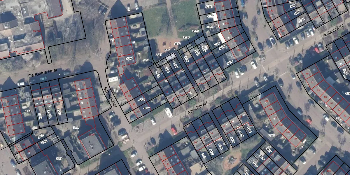 Gebruik de zoekbalk of klik op een perceel voor informatie over de adressen binnen dit perceel.