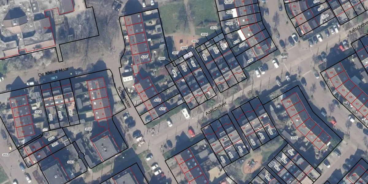 Gebruik de zoekbalk of klik op een perceel voor informatie over de adressen binnen dit perceel.