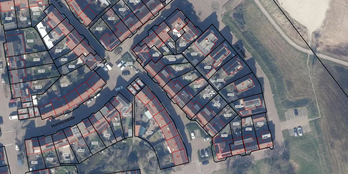 Het perceel waarop De Kor 21 staat heeft een oppervlakte van 163 m². Dit is een middelgroot perceel. De perceeloppervlakte wordt geregistreerd door het Kadaster. Gedetailleerde informatie over de maten van dit perceel kunt u vinden in het rapport Kadastrale kaart met maatvoering van De Kor 21.