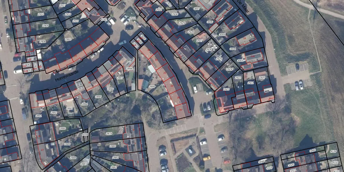 Het perceel waarop De Kor 24 staat heeft een oppervlakte van 840 m². Dit is een groot perceel. De perceeloppervlakte wordt geregistreerd door het Kadaster. Gedetailleerde informatie over de maten van dit perceel kunt u vinden in het rapport Kadastrale kaart met maatvoering van De Kor 24.