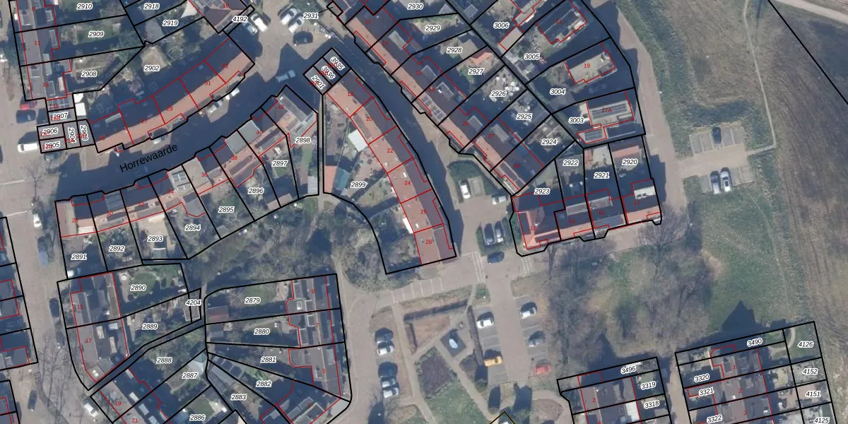 Het perceel waarop De Kor 26 staat heeft een oppervlakte van 840 m². Dit is een groot perceel. De perceeloppervlakte wordt geregistreerd door het Kadaster. Gedetailleerde informatie over de maten van dit perceel kunt u vinden in het rapport Kadastrale kaart met maatvoering van De Kor 26.