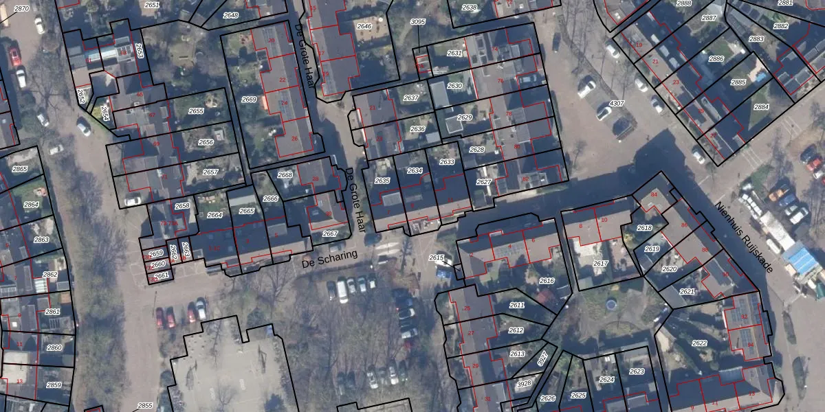 Gebruik de zoekbalk of klik op een perceel voor informatie over de adressen binnen dit perceel.
