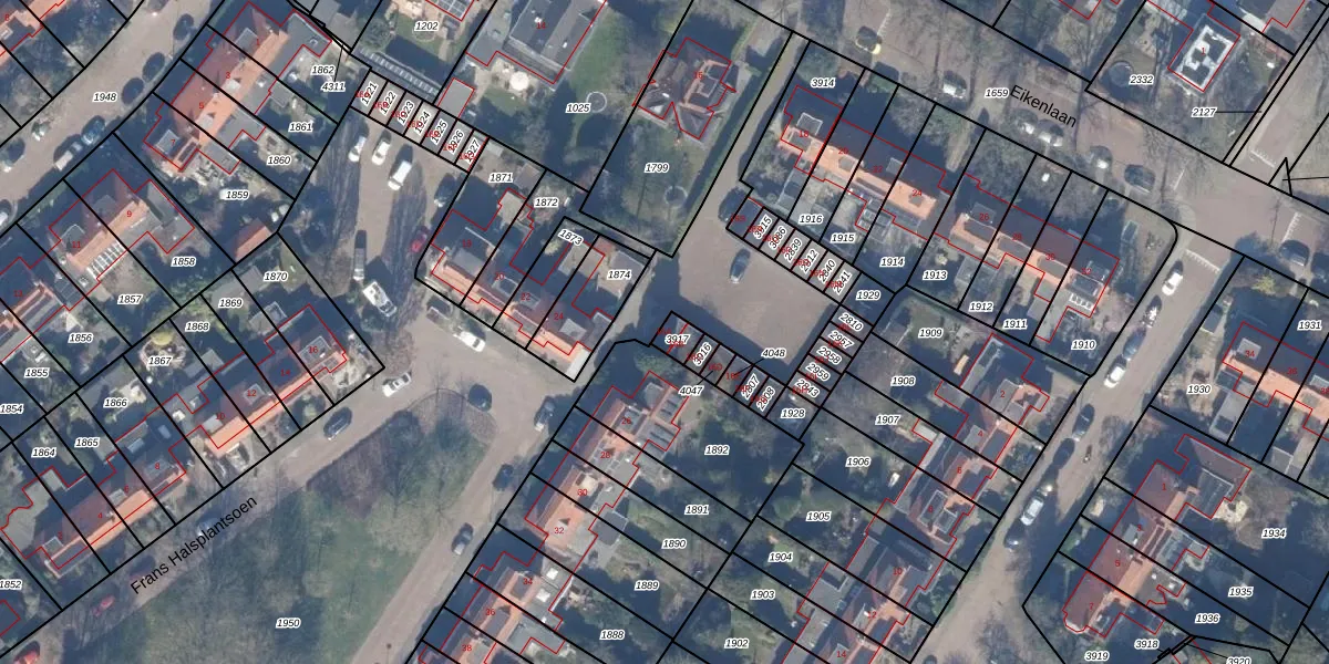 Het perceel waarop Eikenlaan 16-A staat heeft een oppervlakte van 35 m². Dit is een klein perceel. De perceeloppervlakte wordt geregistreerd door het Kadaster. Gedetailleerde informatie over de maten van dit perceel kunt u vinden in het rapport Kadastrale kaart met maatvoering van Eikenlaan 16-A.