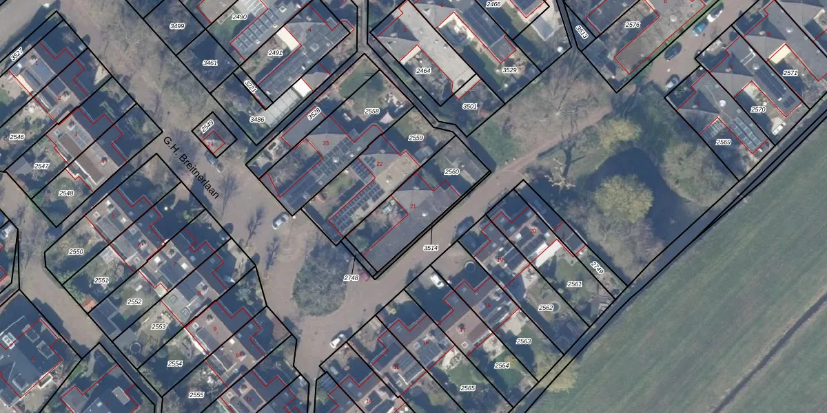G.H. Breitnerlaan 21 is gelegen op kadastraal perceel MDN01C2560. Deze kadastrale aanduiding is uniek en wordt gebruikt door het Kadaster om eigendomsrechten en andere zakelijke rechten vast te leggen. Het perceel maakt onderdeel uit van de kadastrale gemeente Muiden.