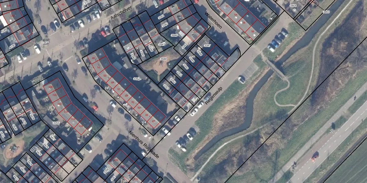 Het perceel waarop Regenwulp 12 staat heeft een oppervlakte van 112 m². Dit is een middelgroot perceel. De perceeloppervlakte wordt geregistreerd door het Kadaster. Gedetailleerde informatie over de maten van dit perceel kunt u vinden in het rapport Kadastrale kaart met maatvoering van Regenwulp 12.