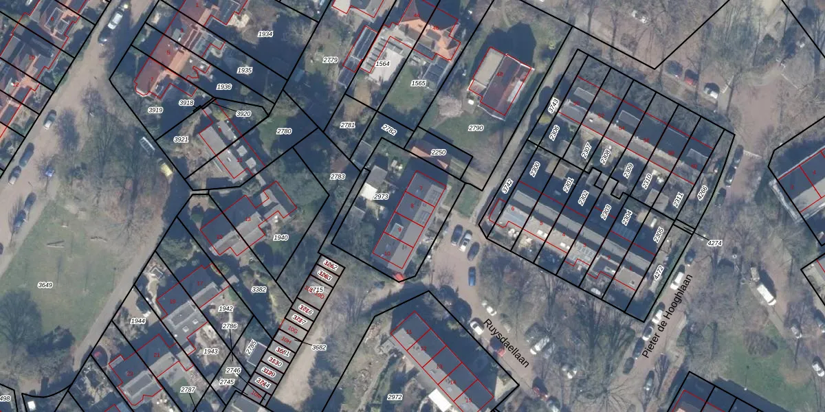 Het perceel waarop Ruysdaellaan 8 staat heeft een oppervlakte van 640 m². Dit is een groot perceel. De perceeloppervlakte wordt geregistreerd door het Kadaster. Gedetailleerde informatie over de maten van dit perceel kunt u vinden in het rapport Kadastrale kaart met maatvoering van Ruysdaellaan 8.
