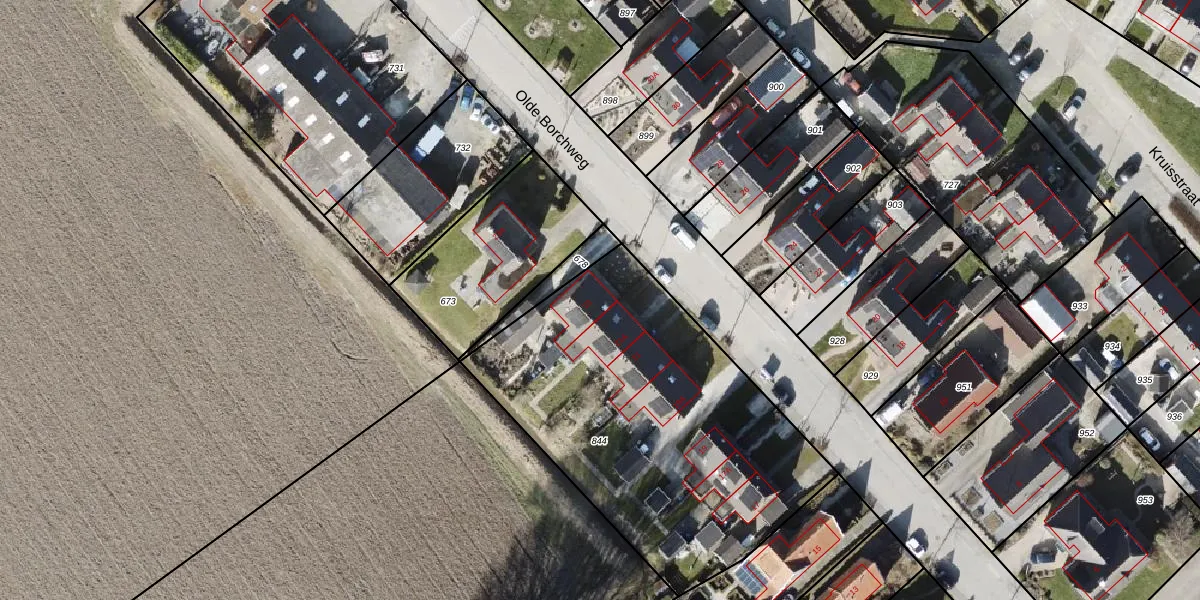 Olde Borchweg 23 is gelegen op kadastraal perceel BRM02B844. Deze kadastrale aanduiding is uniek en wordt gebruikt door het Kadaster om eigendomsrechten en andere zakelijke rechten vast te leggen. Het perceel maakt onderdeel uit van de kadastrale gemeente Burum.