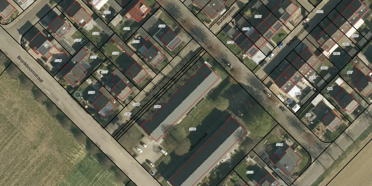 Het perceel waarop Munsterstraat 9 staat heeft een oppervlakte van 3732 m². Dit is een zeer groot perceel. De perceeloppervlakte wordt geregistreerd door het Kadaster. Gedetailleerde informatie over de maten van dit perceel kunt u vinden in het rapport Kadastrale kaart met maatvoering van Munsterstraat 9.
