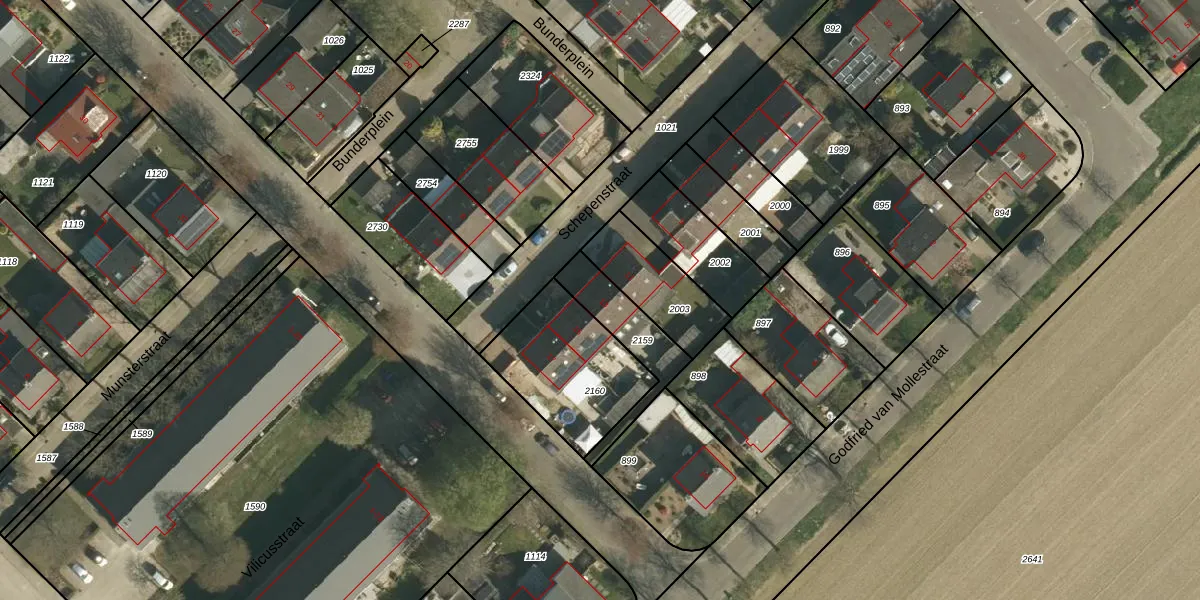 Schepenstraat 13 is gelegen op kadastraal perceel MSG00C2159. Deze kadastrale aanduiding is uniek en wordt gebruikt door het Kadaster om eigendomsrechten en andere zakelijke rechten vast te leggen. Het perceel maakt onderdeel uit van de kadastrale gemeente Munstergeleen.