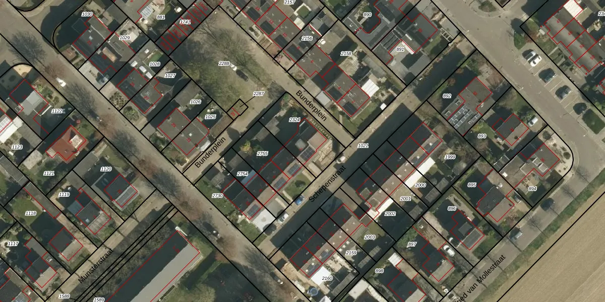 Schepenstraat 2 is gelegen op kadastraal perceel MSG00C2324. Deze kadastrale aanduiding is uniek en wordt gebruikt door het Kadaster om eigendomsrechten en andere zakelijke rechten vast te leggen. Het perceel maakt onderdeel uit van de kadastrale gemeente Munstergeleen.