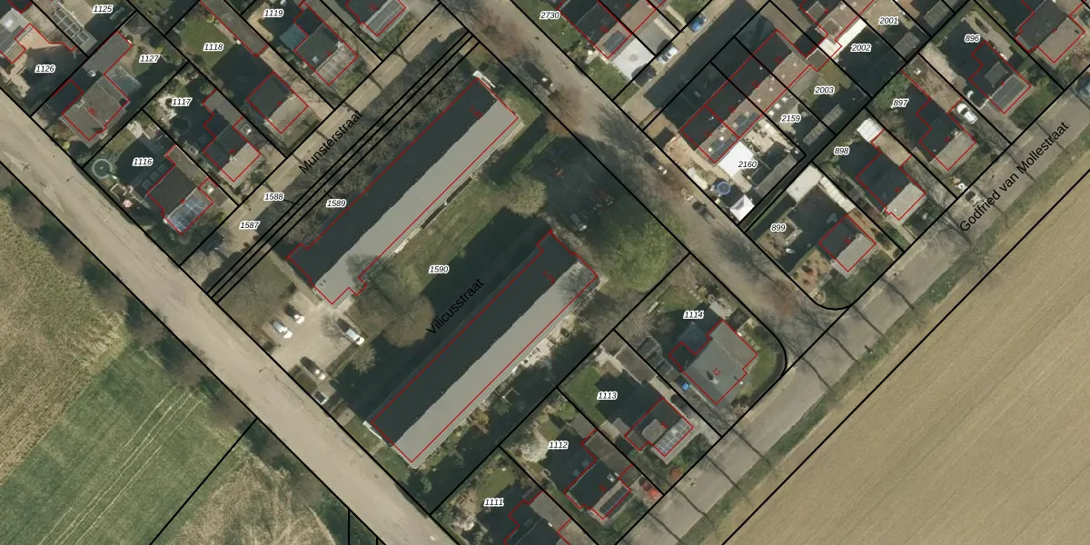 Vilicusstraat 1 is gelegen op kadastraal perceel MSG00C1590. Deze kadastrale aanduiding is uniek en wordt gebruikt door het Kadaster om eigendomsrechten en andere zakelijke rechten vast te leggen. Het perceel maakt onderdeel uit van de kadastrale gemeente Munstergeleen.