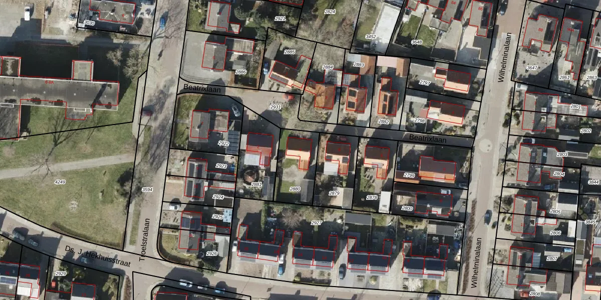 Het perceel waarop Beatrixlaan 4 staat heeft een oppervlakte van 323 m². Dit is een groot perceel. De perceeloppervlakte wordt geregistreerd door het Kadaster. Gedetailleerde informatie over de maten van dit perceel kunt u vinden in het rapport Kadastrale kaart met maatvoering van Beatrixlaan 4.