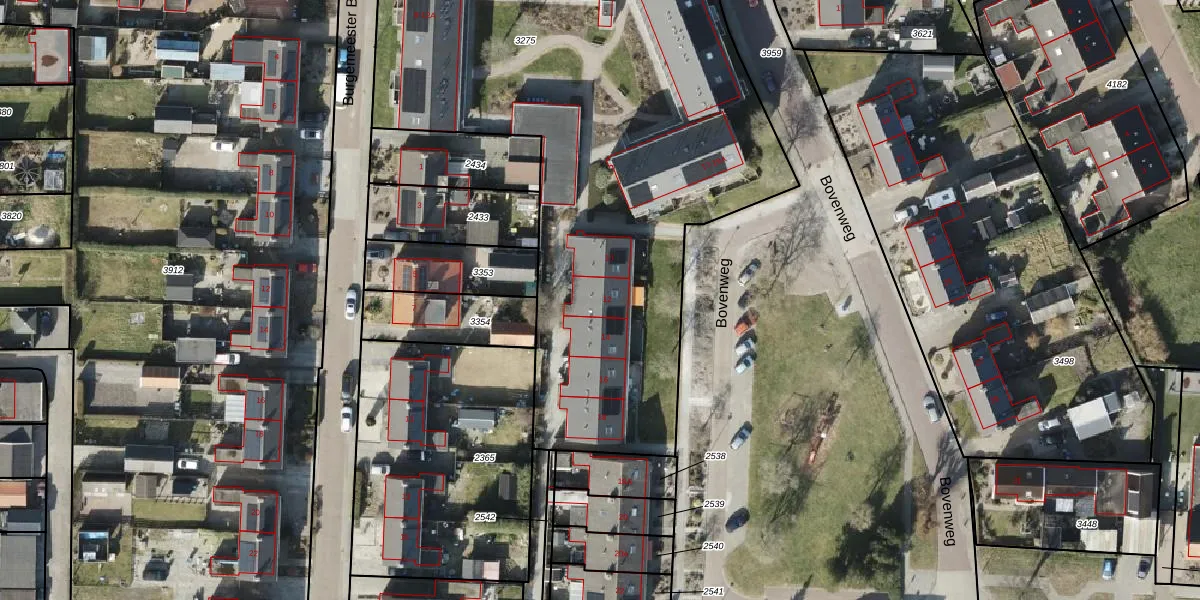 Het perceel waarop Bovenweg 12 staat heeft een oppervlakte van 3658 m². Dit is een zeer groot perceel. De perceeloppervlakte wordt geregistreerd door het Kadaster. Gedetailleerde informatie over de maten van dit perceel kunt u vinden in het rapport Kadastrale kaart met maatvoering van Bovenweg 12.