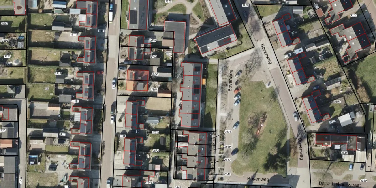 Het perceel waarop Bovenweg 14 staat heeft een oppervlakte van 3658 m². Dit is een zeer groot perceel. De perceeloppervlakte wordt geregistreerd door het Kadaster. Gedetailleerde informatie over de maten van dit perceel kunt u vinden in het rapport Kadastrale kaart met maatvoering van Bovenweg 14.