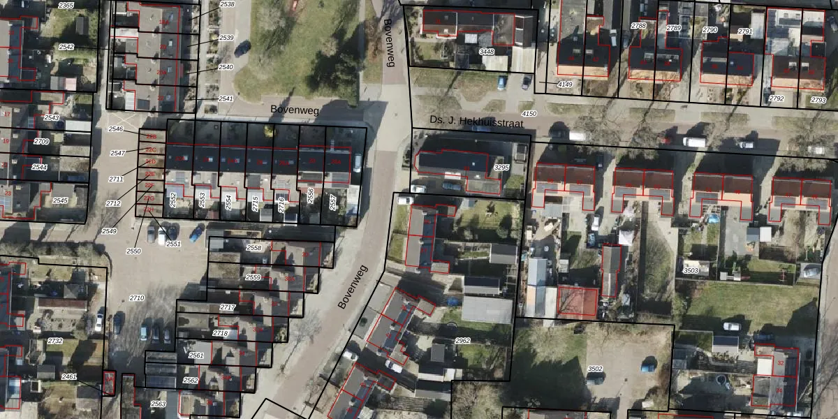 Het perceel waarop Bovenweg 35 staat heeft een oppervlakte van 2080 m². Dit is een zeer groot perceel. De perceeloppervlakte wordt geregistreerd door het Kadaster. Gedetailleerde informatie over de maten van dit perceel kunt u vinden in het rapport Kadastrale kaart met maatvoering van Bovenweg 35.