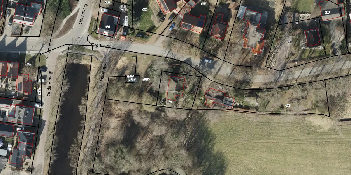 Het perceel waarop Bredeweg 2 staat heeft een oppervlakte van 422 m². Dit is een groot perceel. De perceeloppervlakte wordt geregistreerd door het Kadaster. Gedetailleerde informatie over de maten van dit perceel kunt u vinden in het rapport Kadastrale kaart met maatvoering van Bredeweg 2.