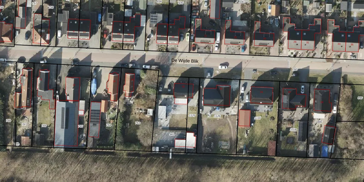 Het perceel waarop De Wijde Blik 18 staat heeft een oppervlakte van 740 m². Dit is een groot perceel. De perceeloppervlakte wordt geregistreerd door het Kadaster. Gedetailleerde informatie over de maten van dit perceel kunt u vinden in het rapport Kadastrale kaart met maatvoering van De Wijde Blik 18.