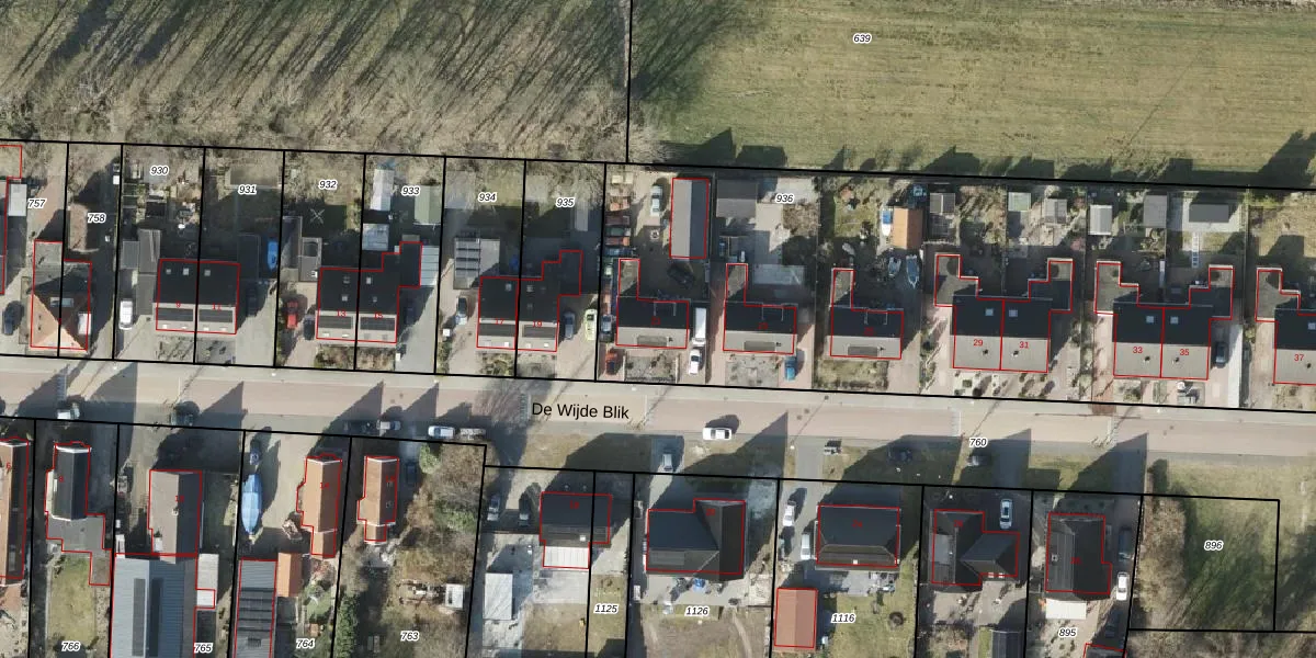 Het perceel waarop De Wijde Blik 21 staat heeft een oppervlakte van 4085 m². Dit is een zeer groot perceel. De perceeloppervlakte wordt geregistreerd door het Kadaster. Gedetailleerde informatie over de maten van dit perceel kunt u vinden in het rapport Kadastrale kaart met maatvoering van De Wijde Blik 21.