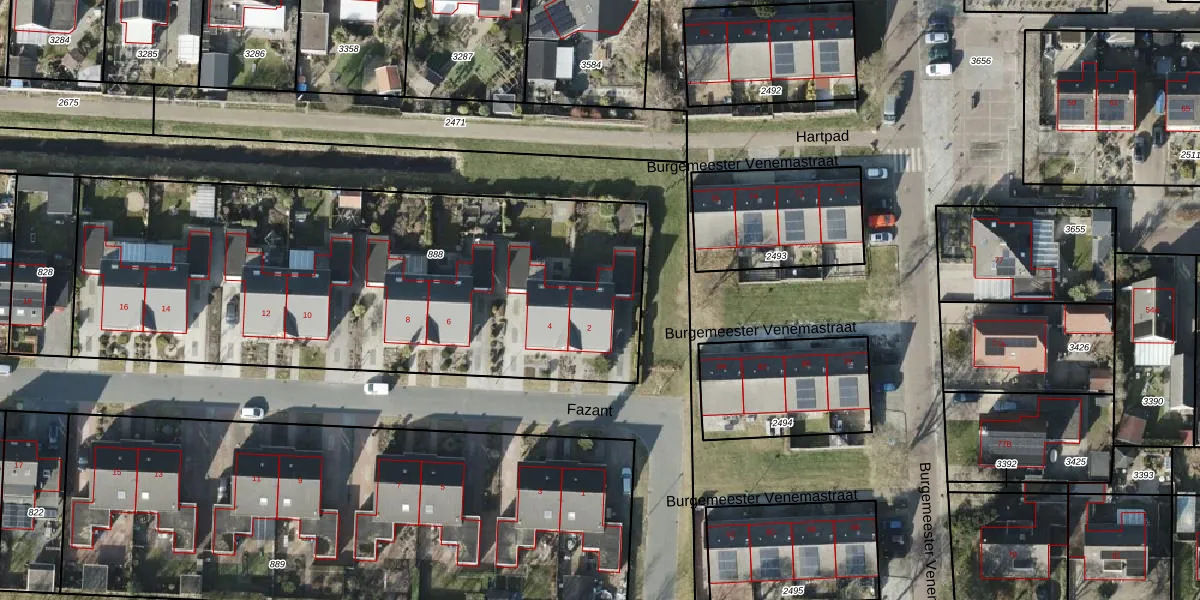 Het perceel waarop Fazant 2 staat heeft een oppervlakte van 2832 m². Dit is een zeer groot perceel. De perceeloppervlakte wordt geregistreerd door het Kadaster. Gedetailleerde informatie over de maten van dit perceel kunt u vinden in het rapport Kadastrale kaart met maatvoering van Fazant 2.