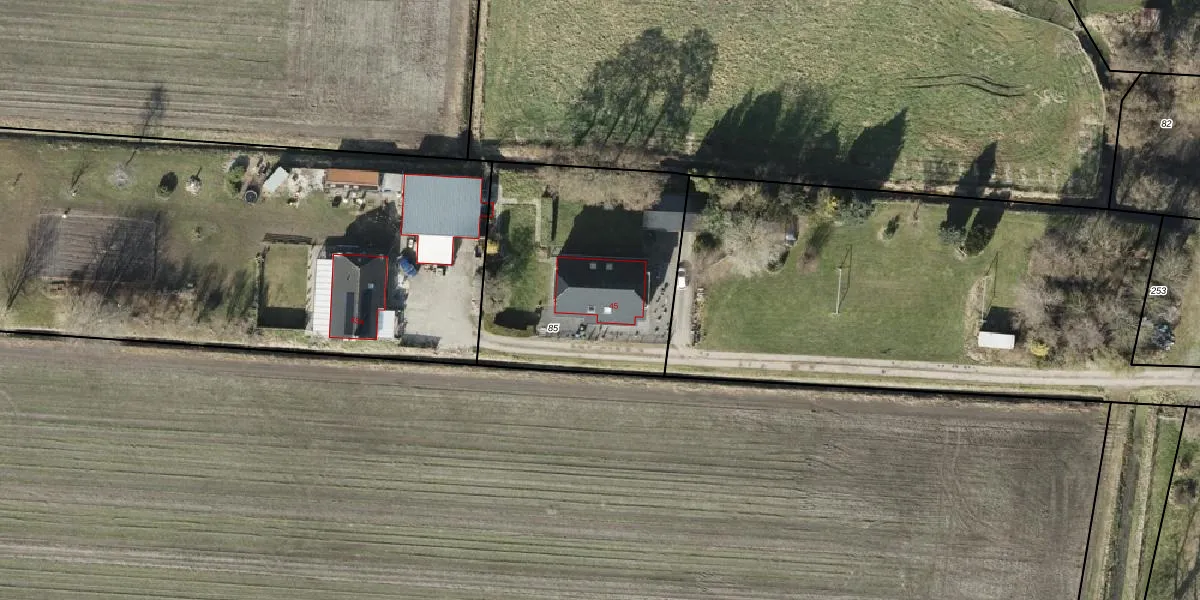 Het adres ligt op het perceel MTD01-E-85, dat zich in de kadastrale gemeente Muntendam bevindt. Het perceel is 1095 m² groot. Dat is kleiner dan de gemiddelde perceeloppervlakte in Muntendam, dat op 7388,95 m² ligt. Het grootste perceel in de kadastrale gemeente is 44,6 ha. Het kleinste perceel heeft een oppervlakte van 0 m². Er zijn geen andere adressen aanwezig op het perceel. In de Basisregistratie Kadaster (BRK) werden de grenzen van het perceel geregistreerd op 13-02-2007.