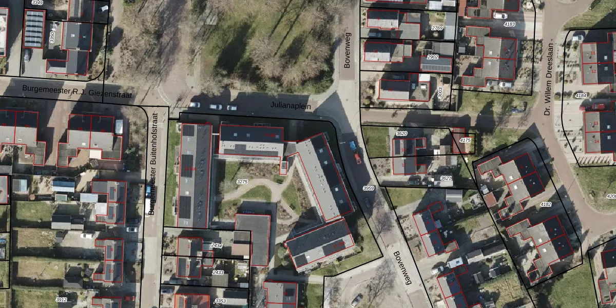 Julianaplein 13-A is gelegen op kadastraal perceel MTD01C3275. Deze kadastrale aanduiding is uniek en wordt gebruikt door het Kadaster om eigendomsrechten en andere zakelijke rechten vast te leggen. Het perceel maakt onderdeel uit van de kadastrale gemeente Muntendam.