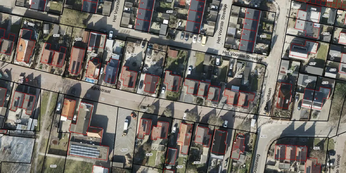 Het perceel waarop Kerkstraat 107 staat heeft een oppervlakte van 1750 m². Dit is een zeer groot perceel. De perceeloppervlakte wordt geregistreerd door het Kadaster. Gedetailleerde informatie over de maten van dit perceel kunt u vinden in het rapport Kadastrale kaart met maatvoering van Kerkstraat 107.